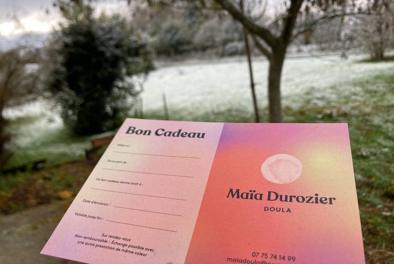 Offre-lui une séance ou un forfait de plusieurs séances avec une doula. Un temps pour échanger, pour se sentir écouté.e, soutenu.e, informé.e, se préparer à l'arrivée de leur bébé.
